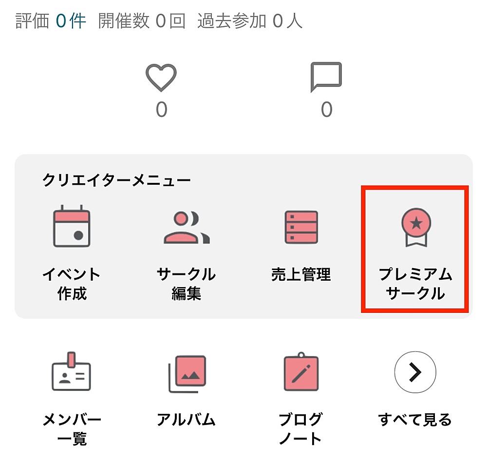 2. クリエイターメニューの「プレミアムサークル」を開く