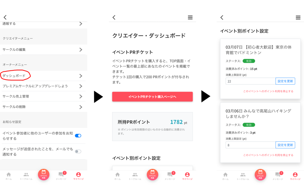 お持ちのポイントは、登録しているすべてのイベントで共有可能