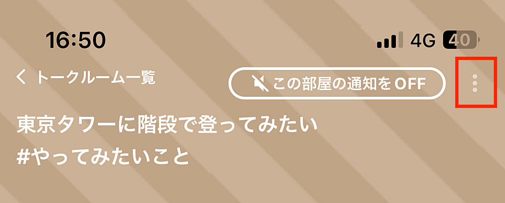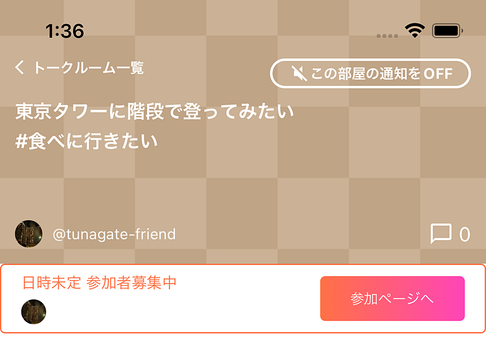 1. トークルーム上部の「参加ページへ」ボタンをタップします。
