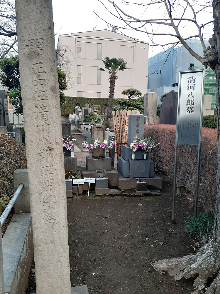 ⑧伝通院(徳川家康の実母の墓を中心に、千姫・将軍家光の正室のお墓など、徳川家の関係者の墓が数え切れないくらいあります。途中から有名人の墓をさがせ!企画になりましたが、写真掲載のように、清河八郎の墓も発見)
