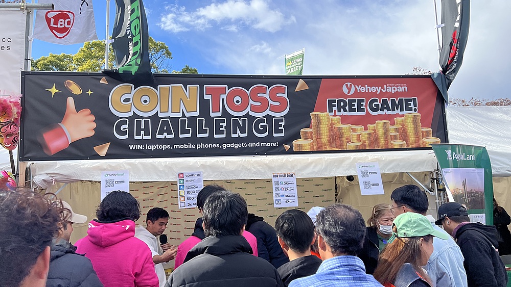 ちなみに最初の写真のコイントスでコインを投げて枠にハマれば豪華賞品がもらえるもので