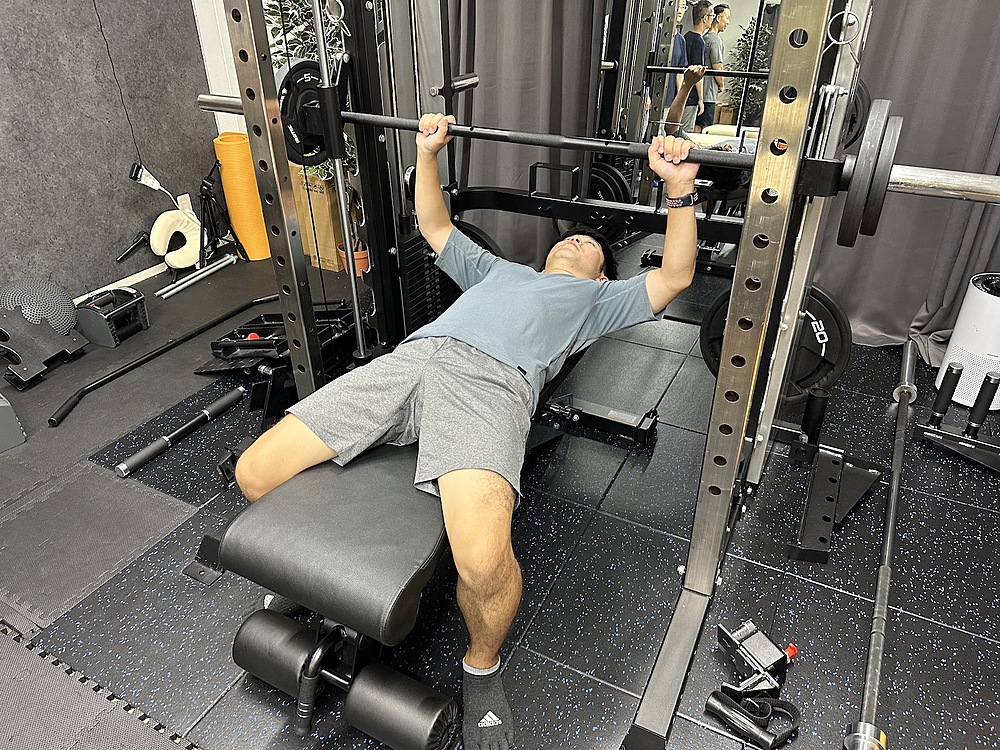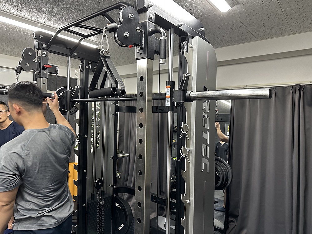 説明を受けて一人一人やっていいます。待ち時間は教わったダンベルなどを使ったトレーニングをそれぞれおこなっていました。