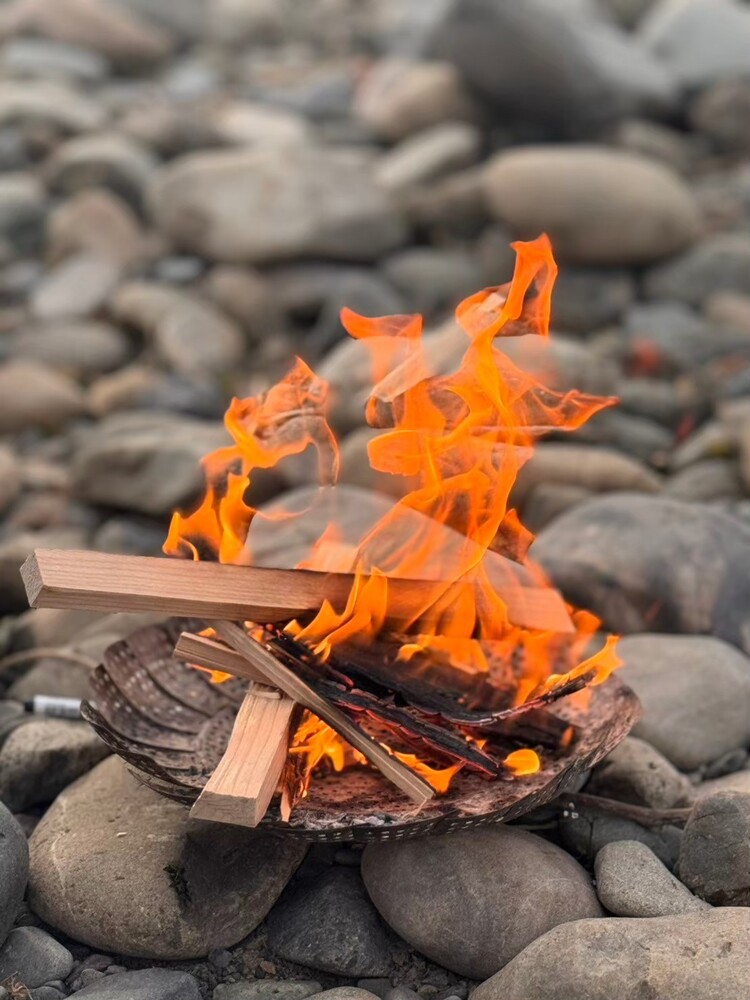 薪の組み方やコツ、燃え上がるメカニズムなどが知れ、私はインストラクターの資格も所持しているので安全に体験できます。