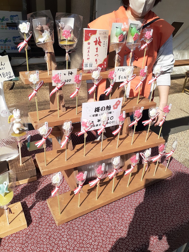 ↓画像のように梅や牛などの飴細工もあるようです。かわいいですね。