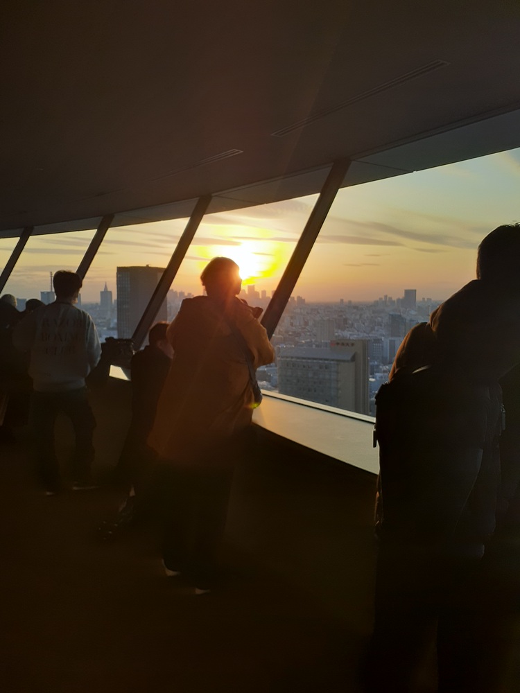 ↓時間はちょうど日の入りの少し前。無料で140mもの高層風景はなかなかいいものですね