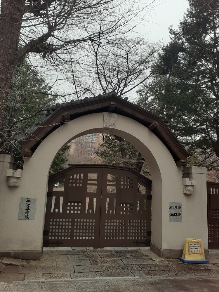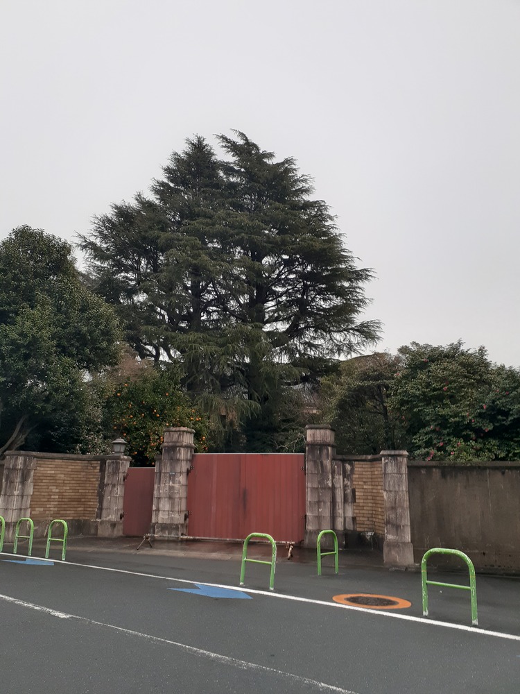 大正時代の名門学校も、今は当時の建築物は正門のみ。