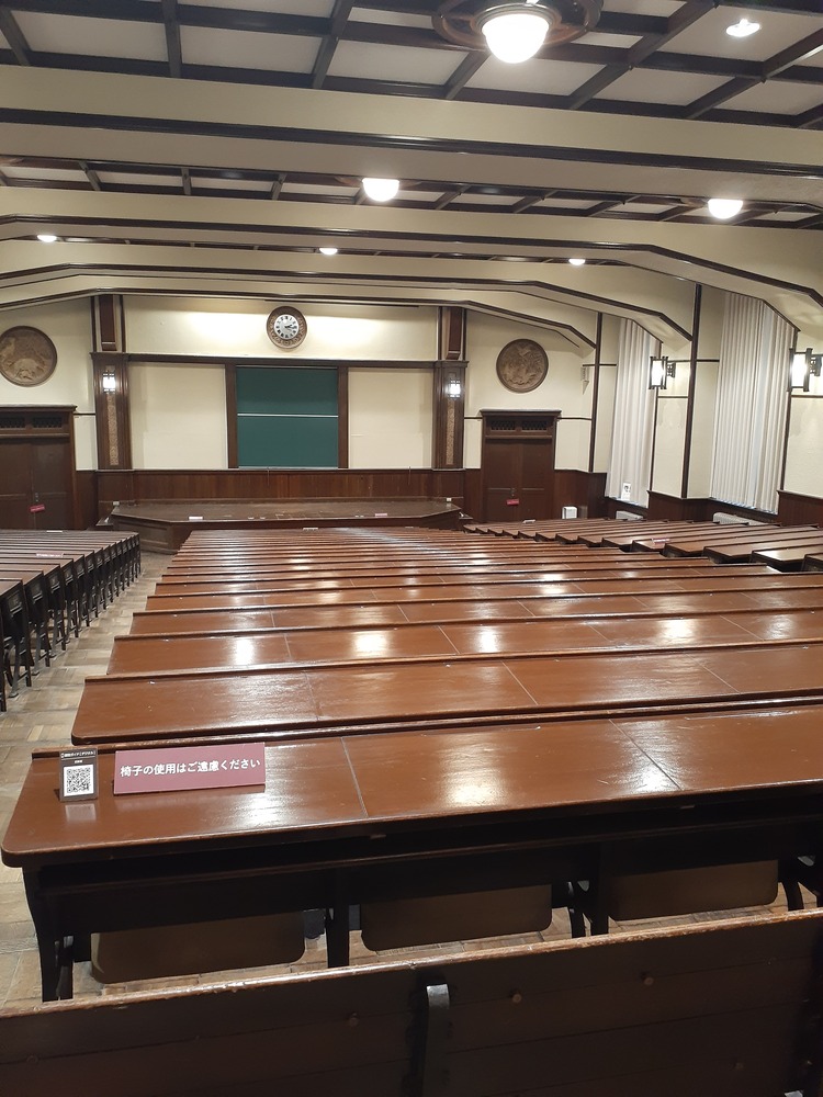 ↓かつての講堂。ここに340名くらいの講義をしていたのかなあと想像しましたね
