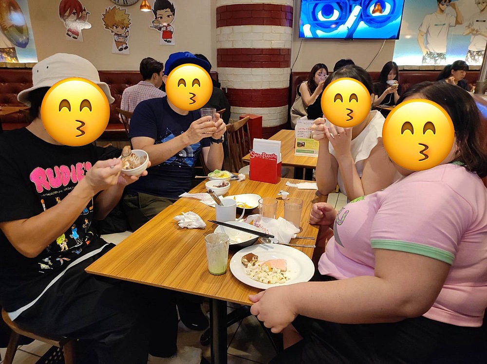 近づきつつある台風の脅威を鑑みつつも2人だけで食べても、一方が料理とってきている時には