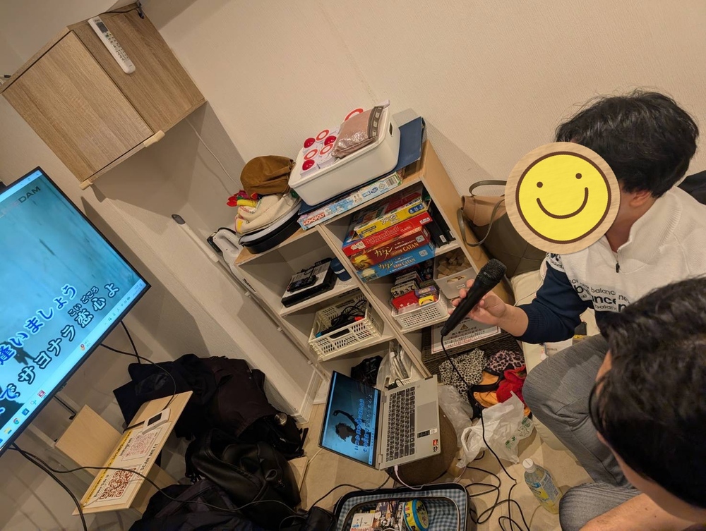 パソコンと繋げてカラオケができる🎤っていうものを持ってきてくださってたりで
