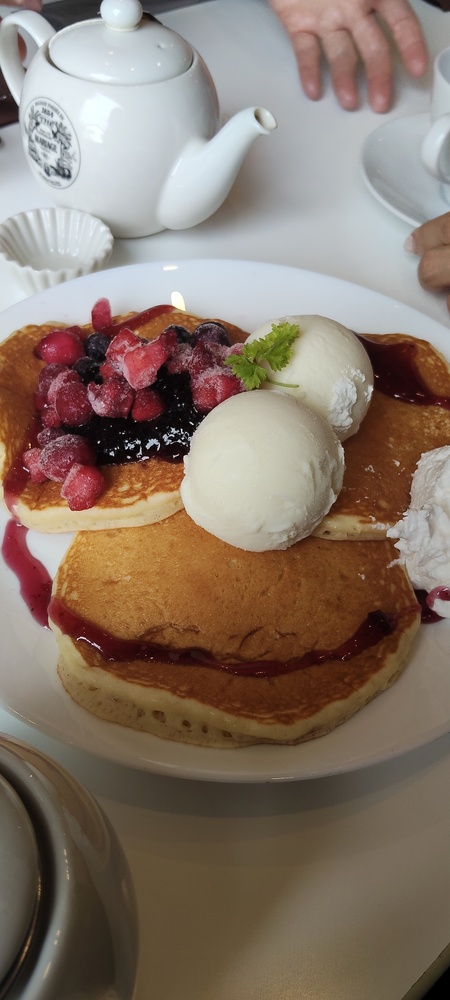 時間がかかるパンケーキの前にすぐできるパンケーキ注文して食べました!