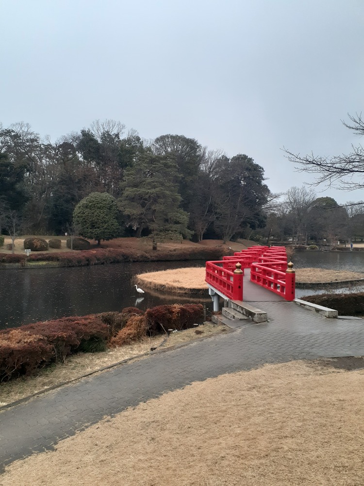 ↓岩槻城址公園には、赤い八ツ橋があります。