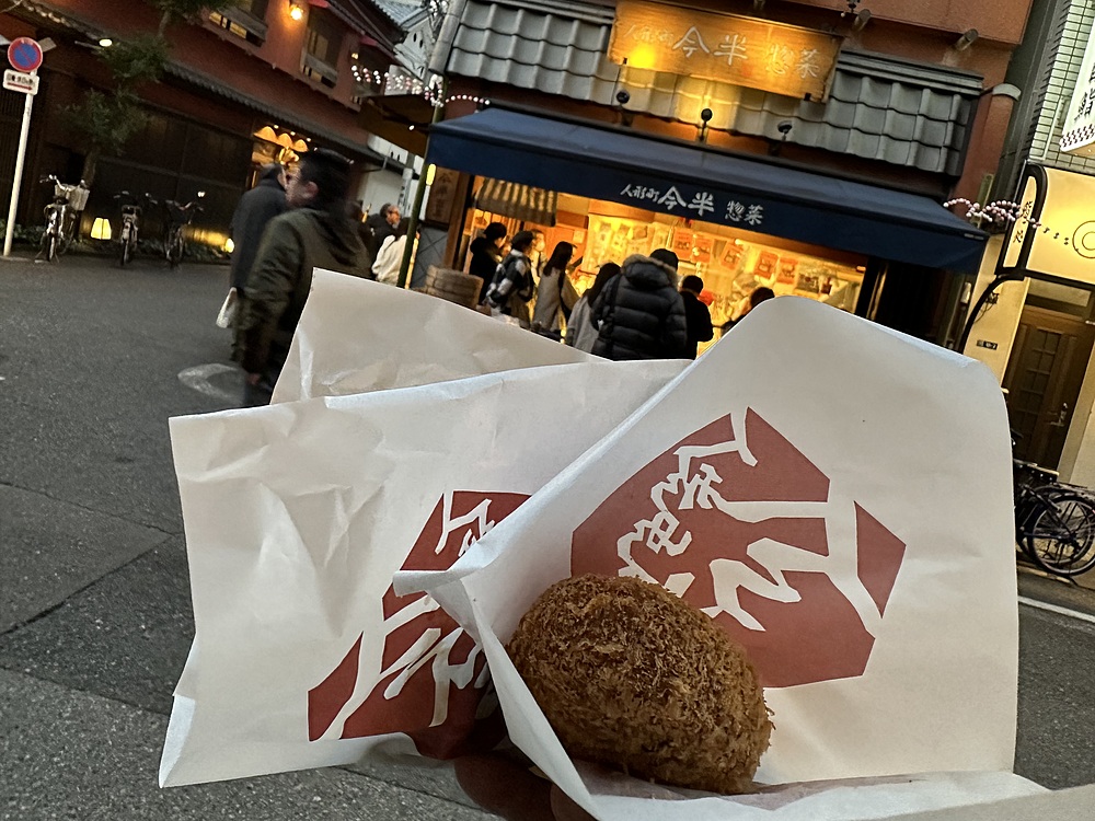 最後は間酒横丁で食べ歩きです。今半のすき焼きコロッケや希望者で東京三大鯛焼きの柳屋の鯛焼きを食べました。両方とも美味しかった〜。