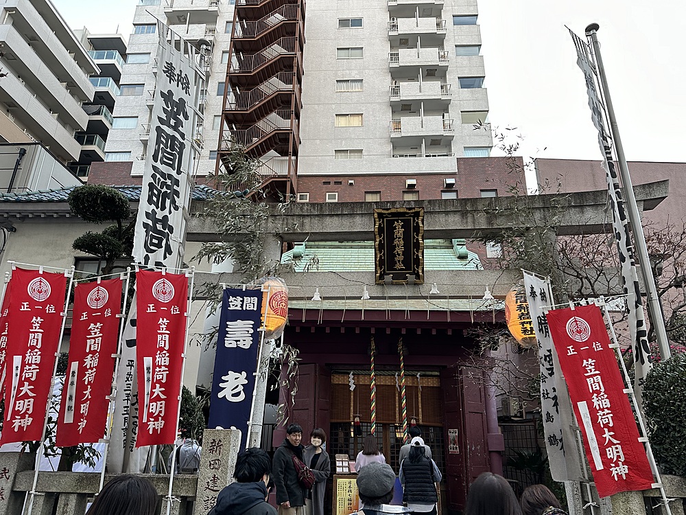 寿老神の笠間稲荷神社を参ります。これで七福神巡りは終了です。お疲れ様でしたー。小網神社でかなり並んだので疲れ果てて、やり切った感を感じることができました。末廣神社で配られていたお酒も少量でしたがいい気持ちにさせてくれましたね。