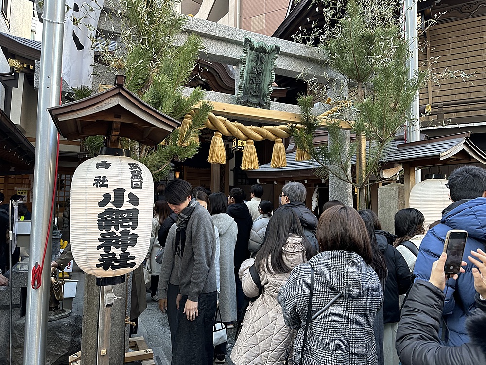 次に、メインの小網神社に向かいます。長蛇の列があります。ここは最低限突破しようと決めていたので、並ぶことにします。いろいろお話をしながら並び、やっと参拝が終わったところで1時間47分が経過していました。やり切ったー。