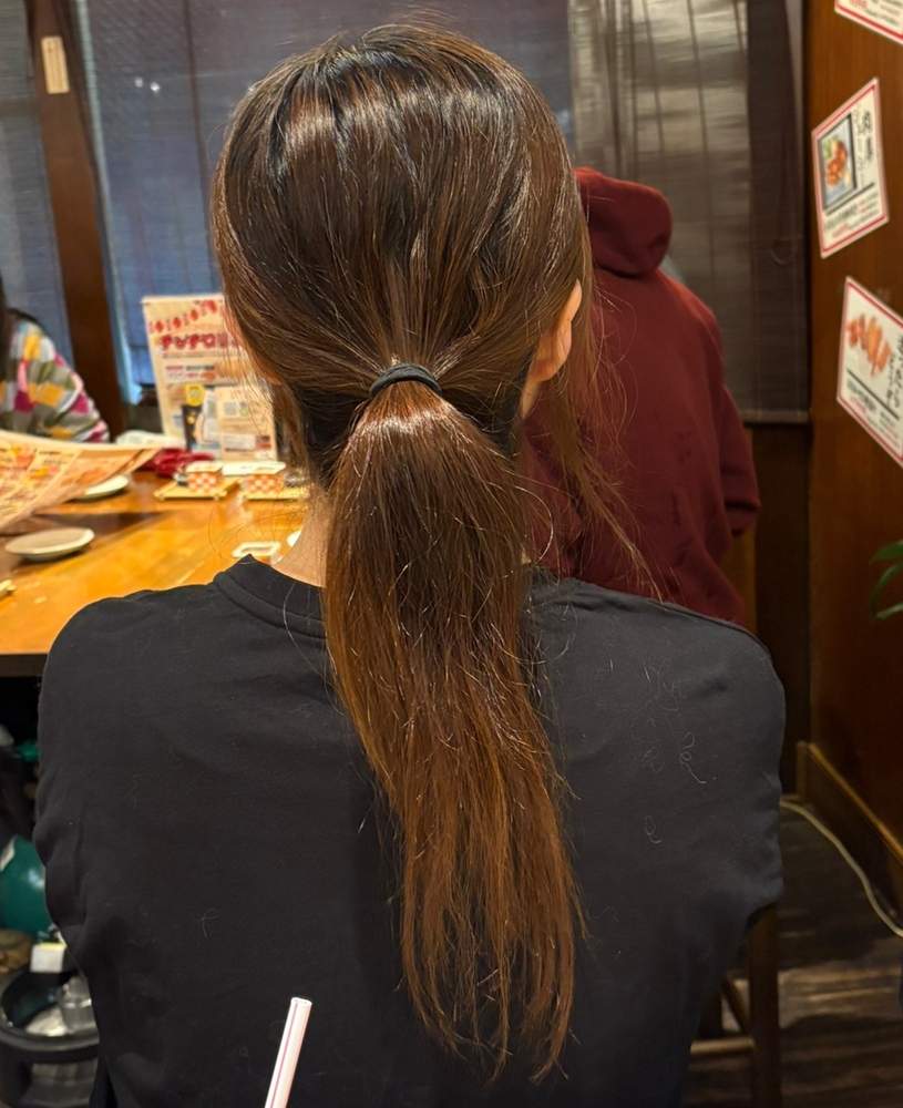 黒ゴムで結んだだけ