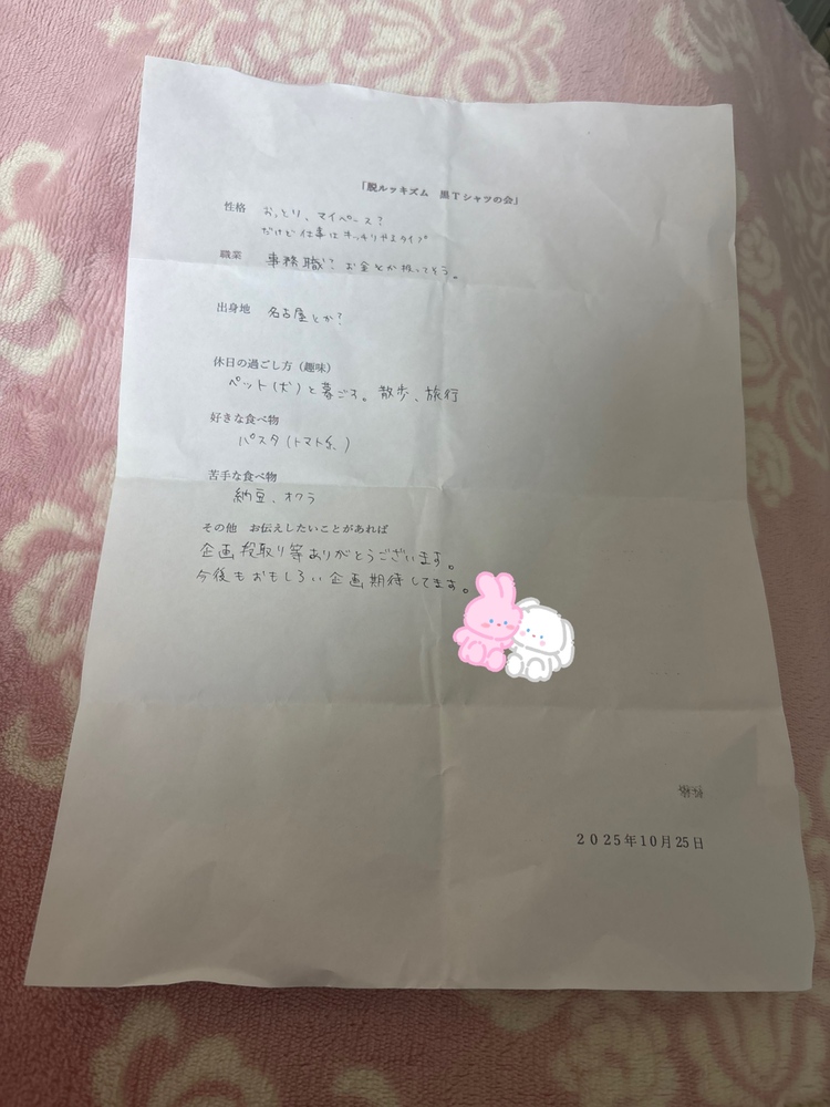 今回脱ルッキズム黒Tシャツの会ですので極力地味に😊