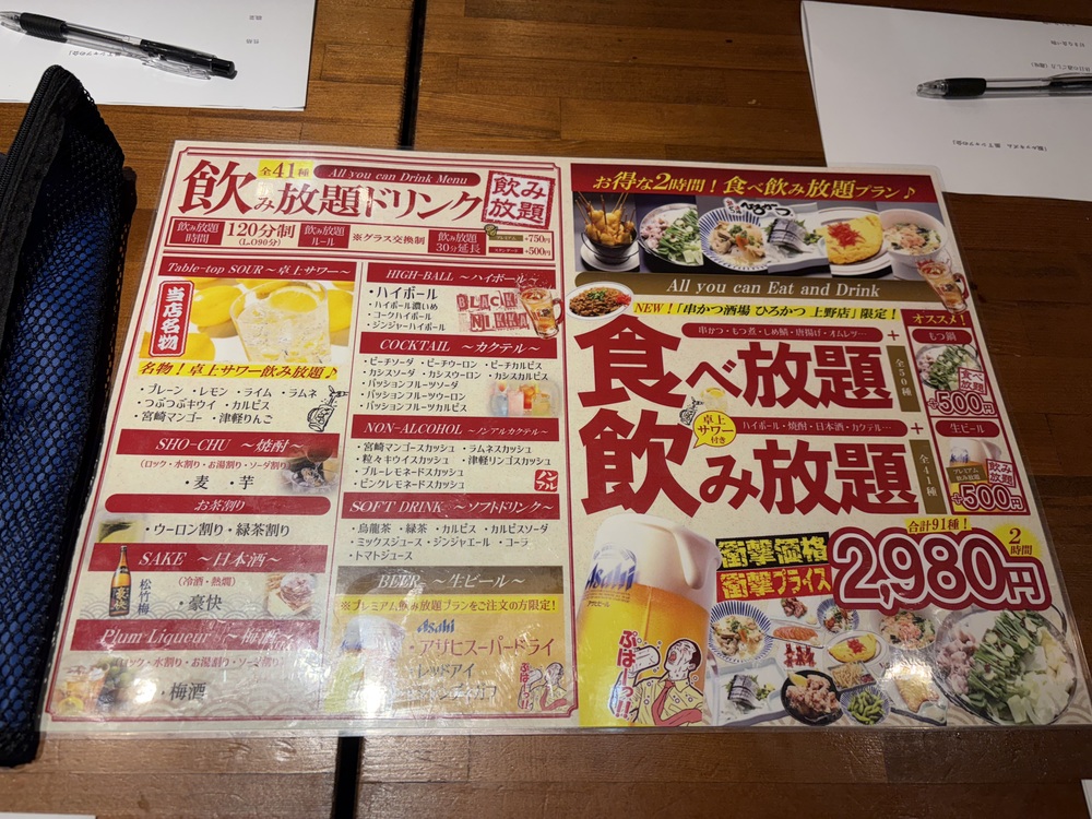 飲み放題メニュー(今回はビール無し)