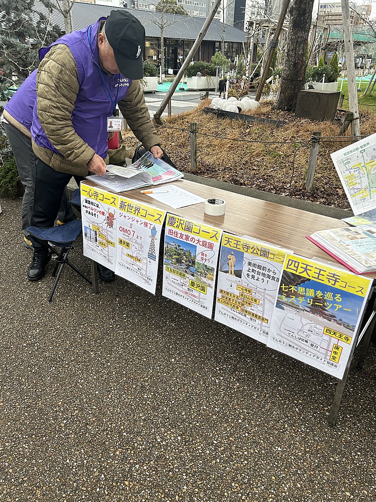 13:00ごろに6名集まりまして、定点ガイドを回りました。初めて参加の方がほとんどでしたが、和気あいあいと楽しめました。1時間半ほどかけて、ベルリンの壁を見て(大阪ではここのみ)、茶臼山に登り大阪の陣を楽しみ、一心寺で真田幸村の抜け道があったところ、お酒をやめたい人がくるお墓を確認しました、最後は安井寺へ行き、真田幸村の像と井戸で定点ガイドは締めくくりました。その後、四天王寺に場所を移し、お茶屋で談笑しました。いろんな話が聞けて、楽しかったです。今回もいい人ばかりでよかったです🎵