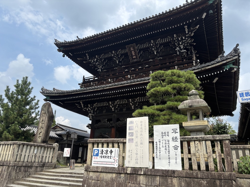 六道の辻を左折してしばらく歩くと清涼寺が見えてきます。立派な山門です。