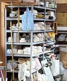 ちなみにアトリエの奥の方のここに型(白いのたくさん)があります
