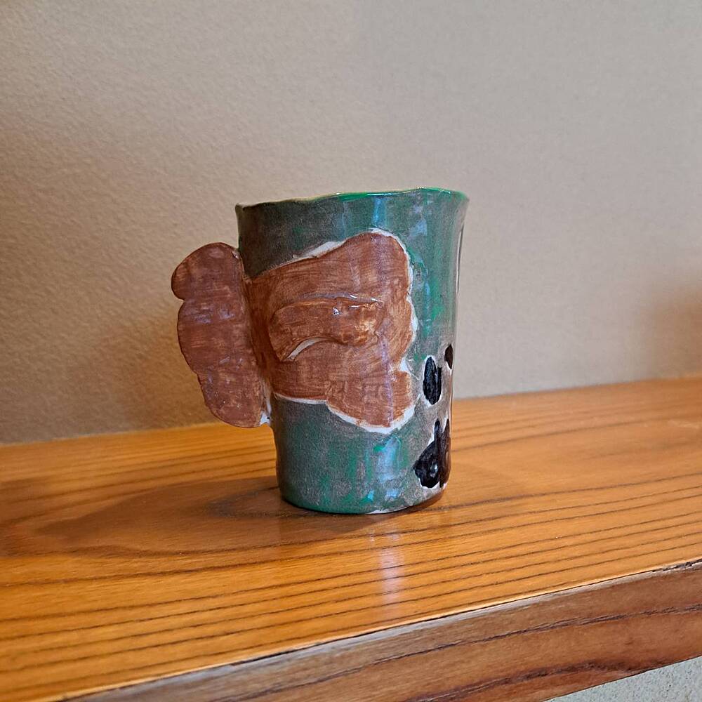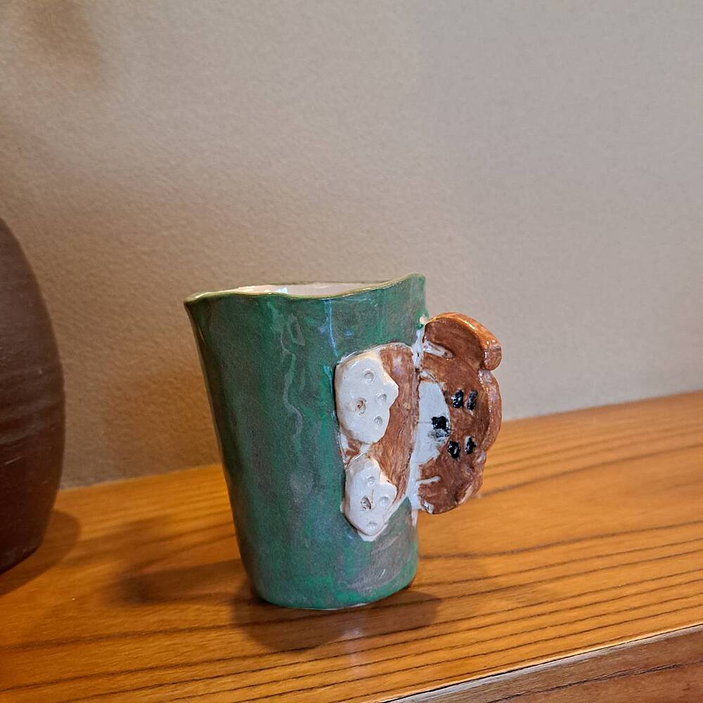 わんちゃんの顔の取っ手をつけたマグ・・・