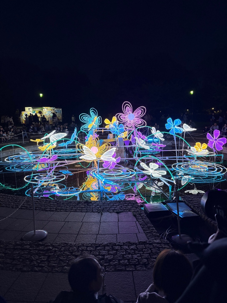 話題のネモフィラソフトは、長蛇の列で諦めでしたが、光と音のイルミネーションも正面から観賞できてとても贅沢な時間となりました。