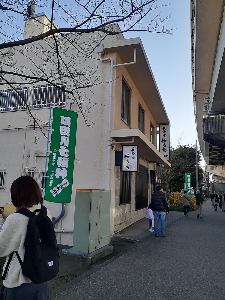 ④長命寺桜もち(合間の休憩は江戸時代から長命寺の桜餅として有名な、山本やへ行きました)