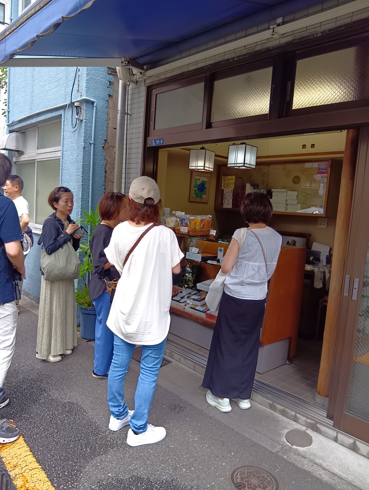 八丁堀駅に集合して、自己紹介、今回の行程を説明し、資料館の前に、和菓子屋に行きました。