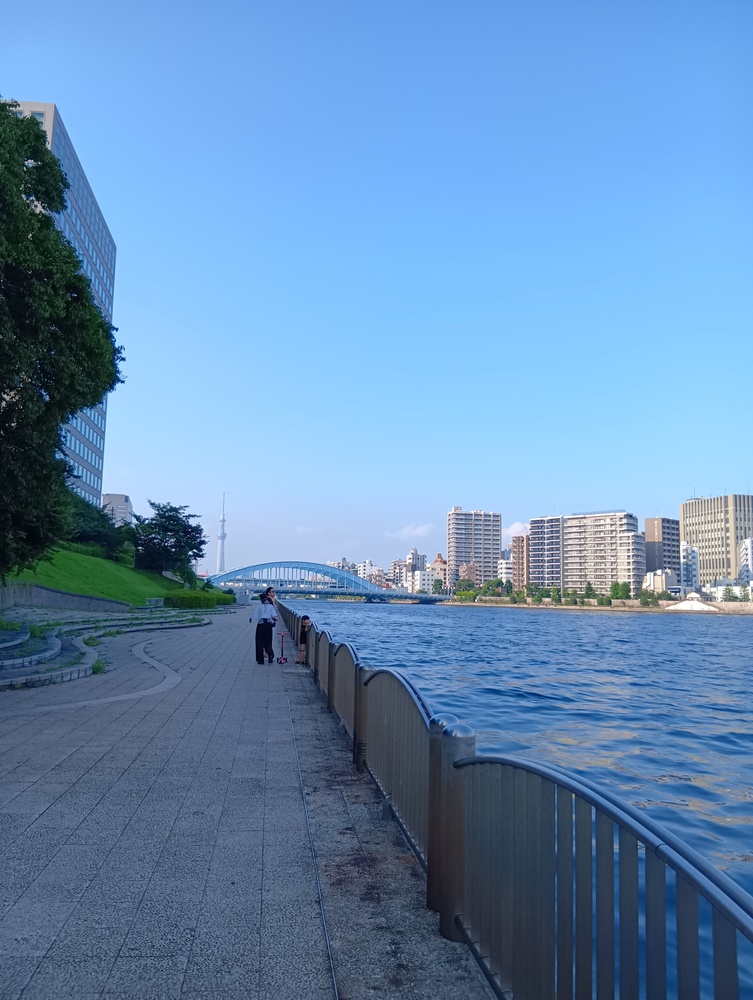 ↑川沿いは涼しいです、ちょうどスカイツリーが見えることに川沿いを離れて