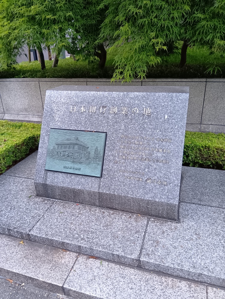 こんなところに?日本銀行創業の地があります。日本銀行っていえば、日本橋の近くにあるはずですけど。