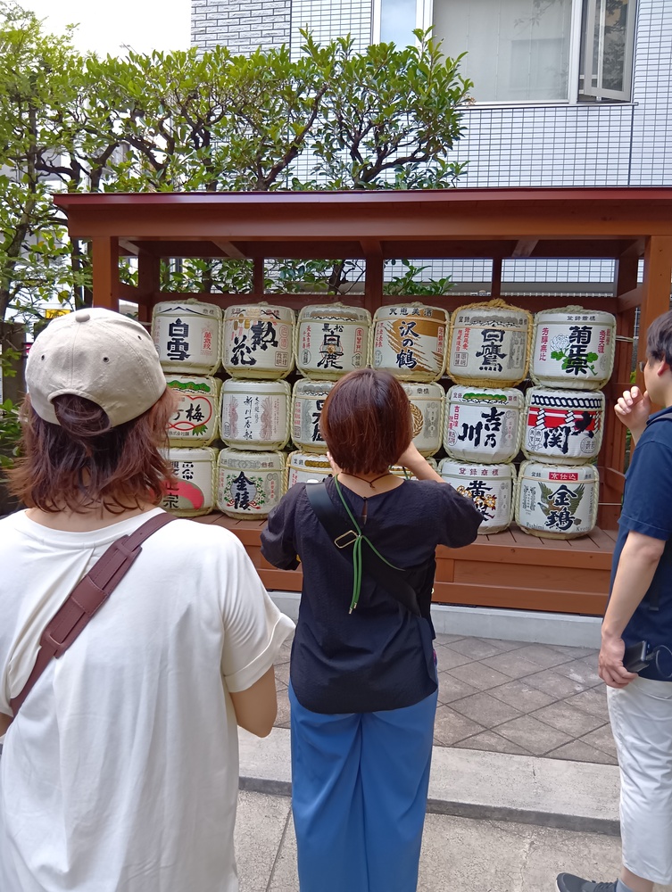 ↓新川とお酒の関係が想像できる、新川大神宮へ。神社境内にある酒樽。残念ながら、中身は入っていませんでした(そりゃそうでしょうね)
