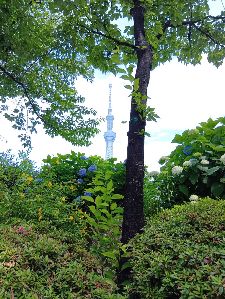 ↓終了後、浅草近くの隅田公園を歩き、言問橋へ。公園にも紫陽花が咲き乱れていました