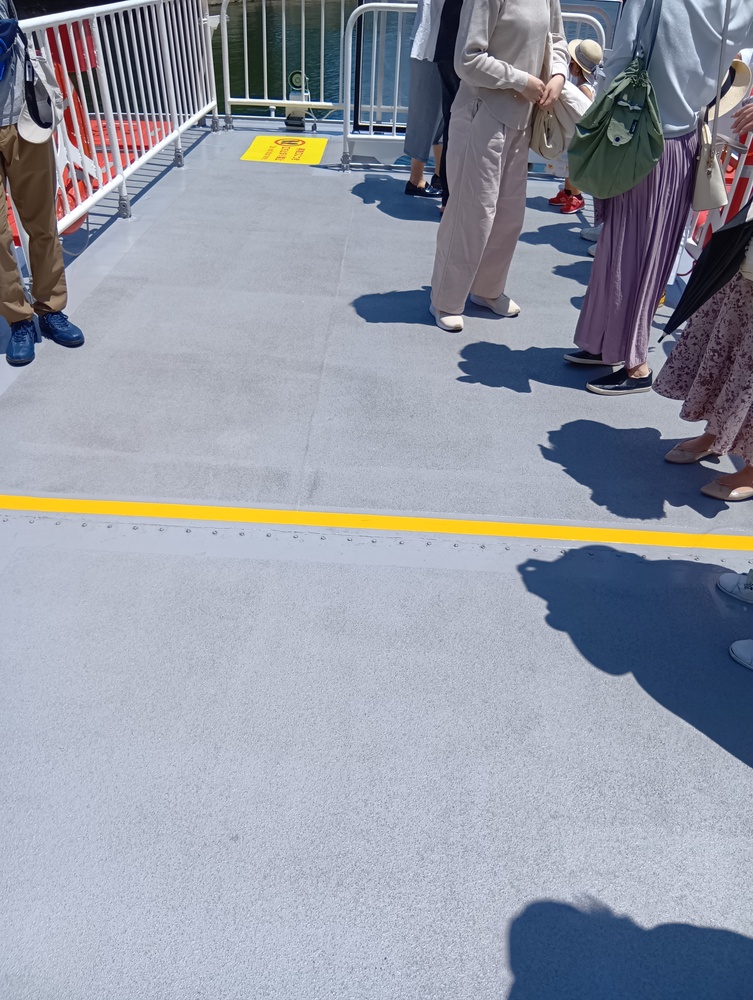 ゆっくり座れる席もあるのですが、ぼくたちは甲板に出ました↓ここから、40分の航海ですね🥳