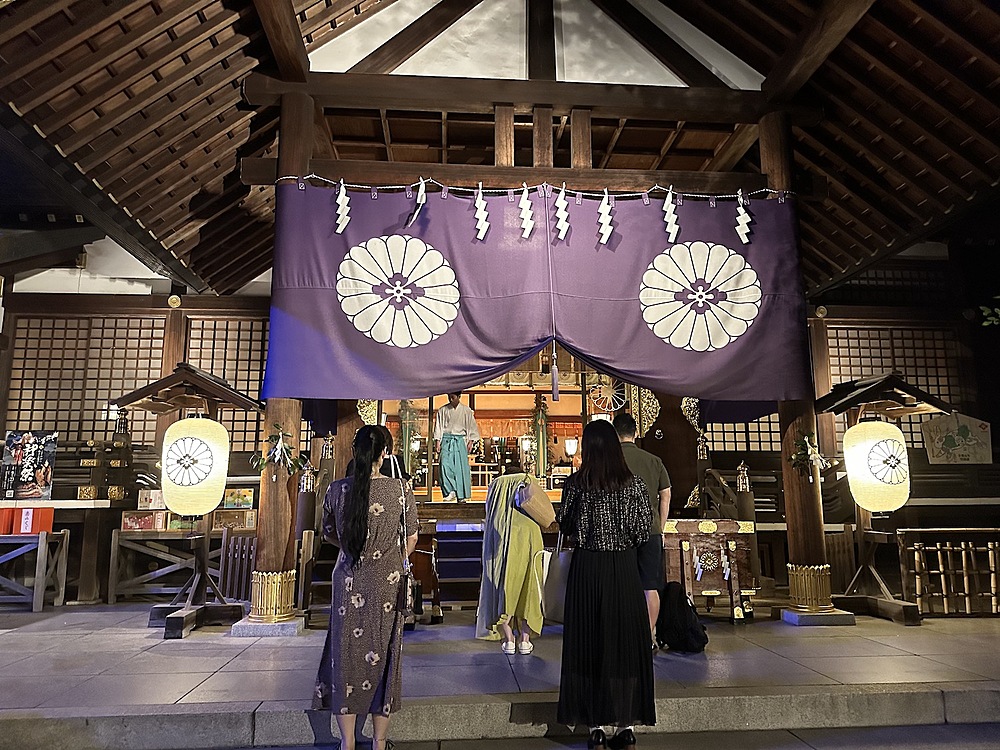8/17に東京大神宮のライトアップに行ってきました。この日は月並祭(毎月行われている神社創建のお祝い)とういことで、鈴蘭と蝶をモチーフとしたライトアップでした。