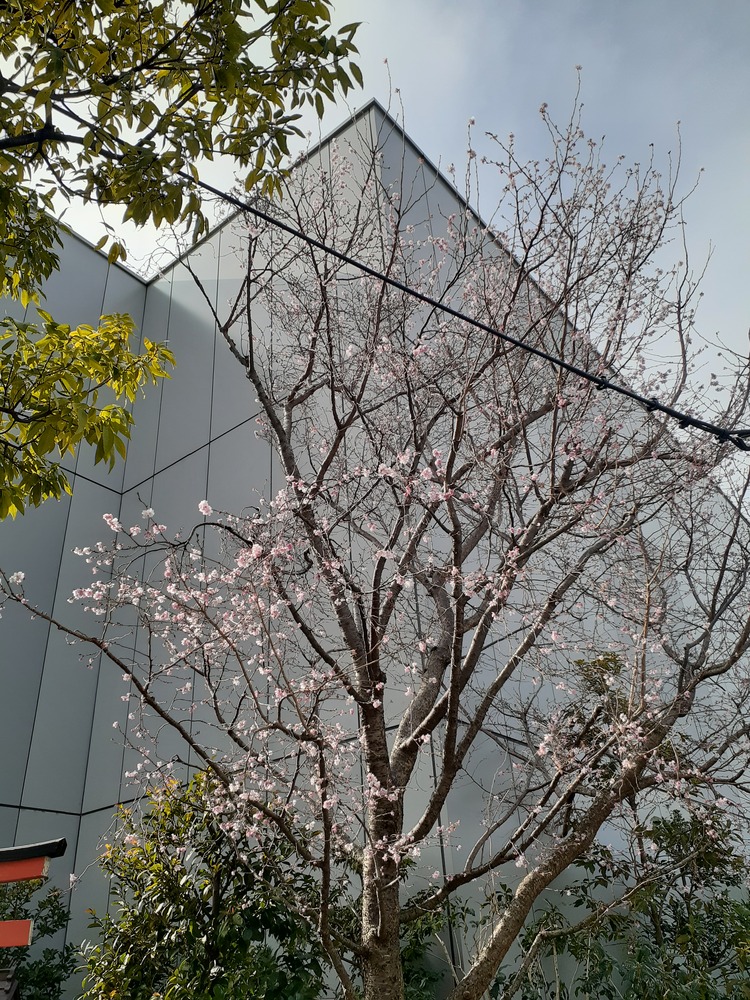 神社の隣には、なんと!桜が少し咲いていました。ソメイヨシノではなく、ジュウガツサクラとか書いてありました↓