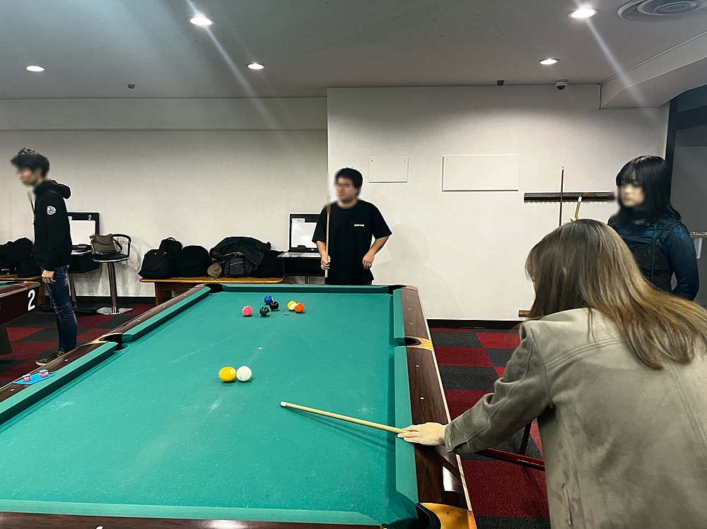 主催も初心者レベルのビリヤード会を行いました🔰当日は、ビリヤードをやるのは今回が初めてです!という方も何人かいらっしゃいました😳ビリヤードを初心者で挑戦するのはなかなか勇気がいりますよね🫠でも、同じような境遇の方がたくさんいたので今回はリラックスして参加できたのかなと思います😌🌿短い時間の中でたくさんの方と話しながら楽しむことができました🌟主催はもうちょっと腕に磨きをかけてみなさんにレクチャーできるよう、次回開催は頑張りますっ😂!笑