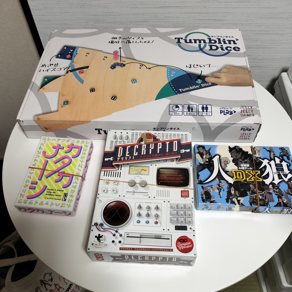 その後初心者卓、経験者卓入り混じって別れて、タンブリンダイス、アヴァロンを楽しみ、最後に全員で人狼ゲームをしました😁