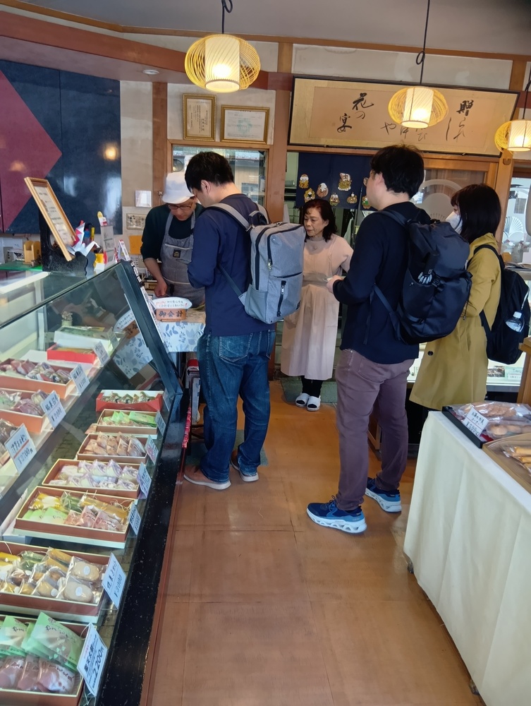 →駅までバス移動をするため、バス停へ。時間があるため、バスが来るまで地元の和菓子屋に行きました。