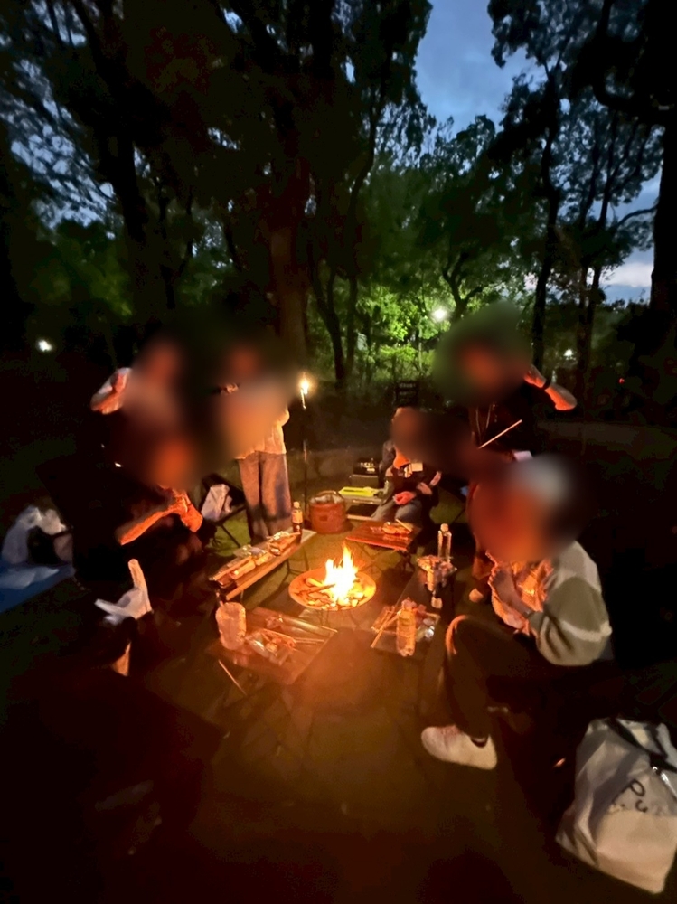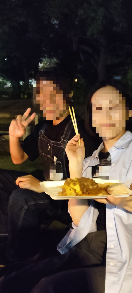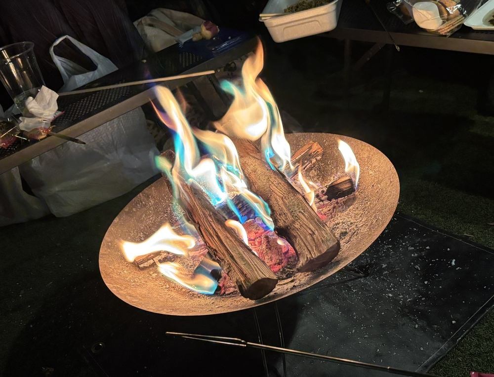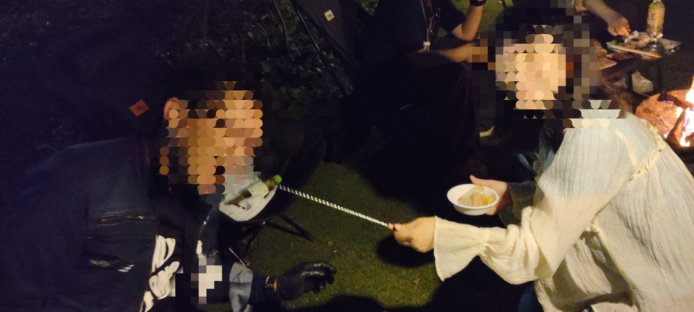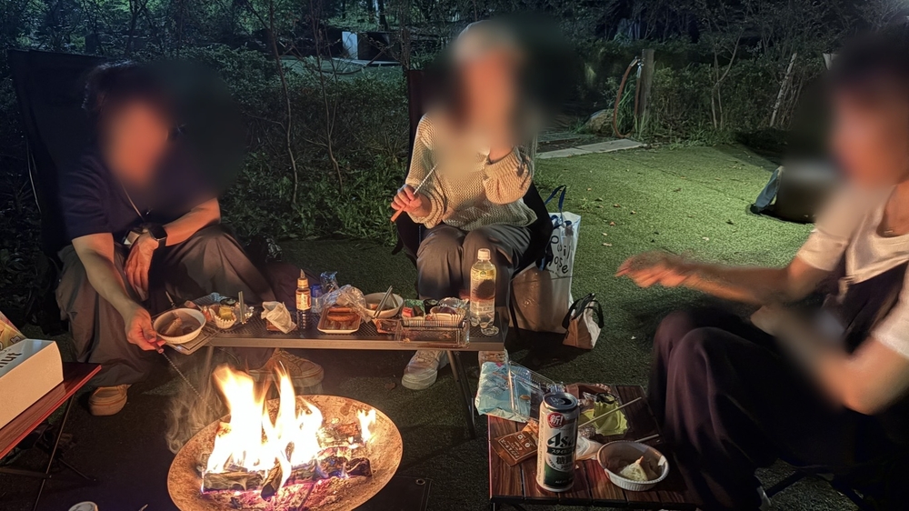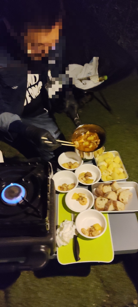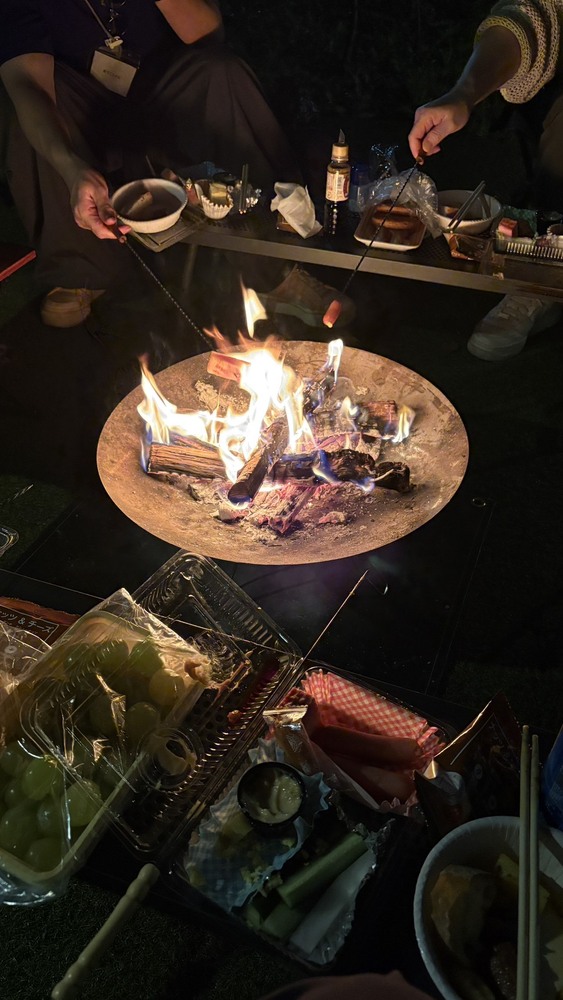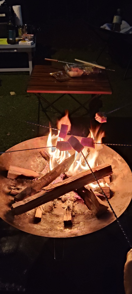 同じ焚き火を囲むチームメイトで持参した差し入れを楽しみましたよ♪
