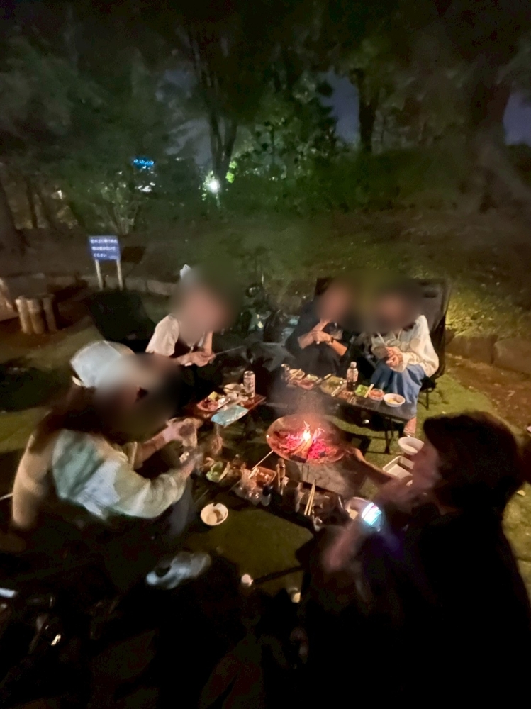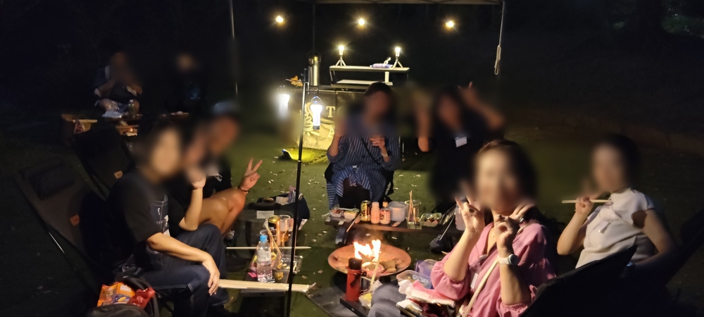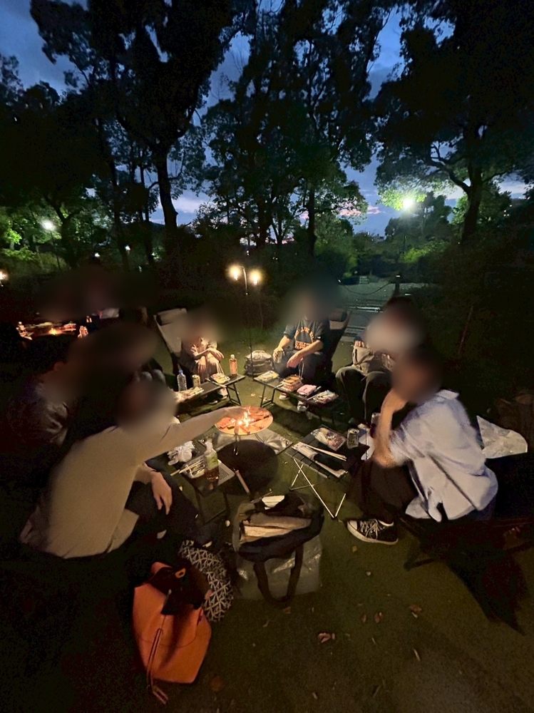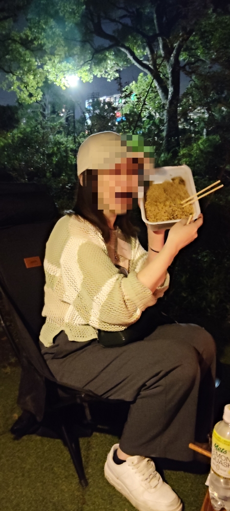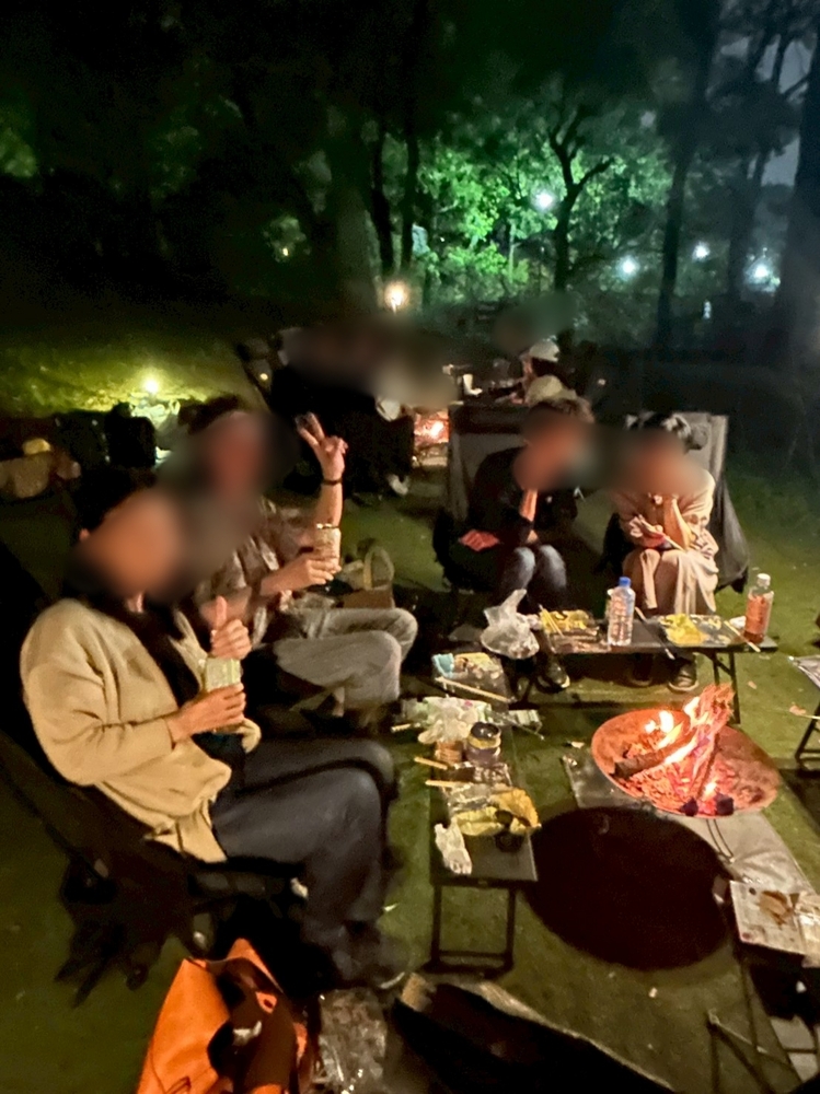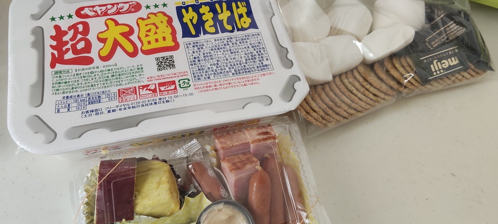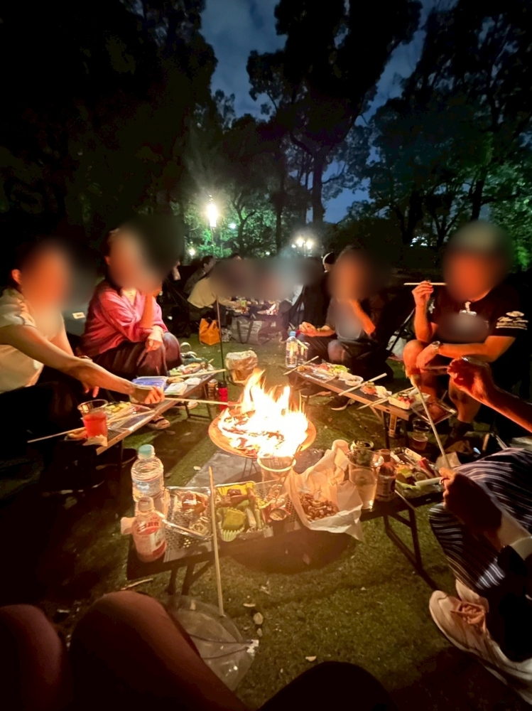 同じ焚き火を囲むチームメイトで持参した差し入れを楽しみましたよ♪