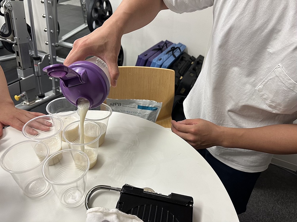 最後はプロテインを飲んで交流です。普段できない筋肉を動かせて本当に満足でした。こういう健康的なイベントももっとやっていきたいなぁと思いました。