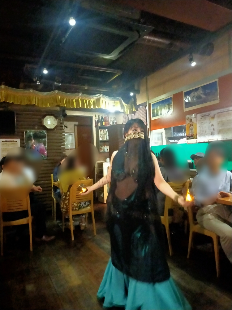 初めてのベリーダンス✨✨インドカレー屋さんで行われるベリーダンス♪妖艶とはこのことか!悩ましいわよ〜んダンサーさんの衣装が✨✨露出高!素敵✨✨いやらしさはありません。色っぽいのです、女子からみてもウットリ( ꈍᴗꈍ)
