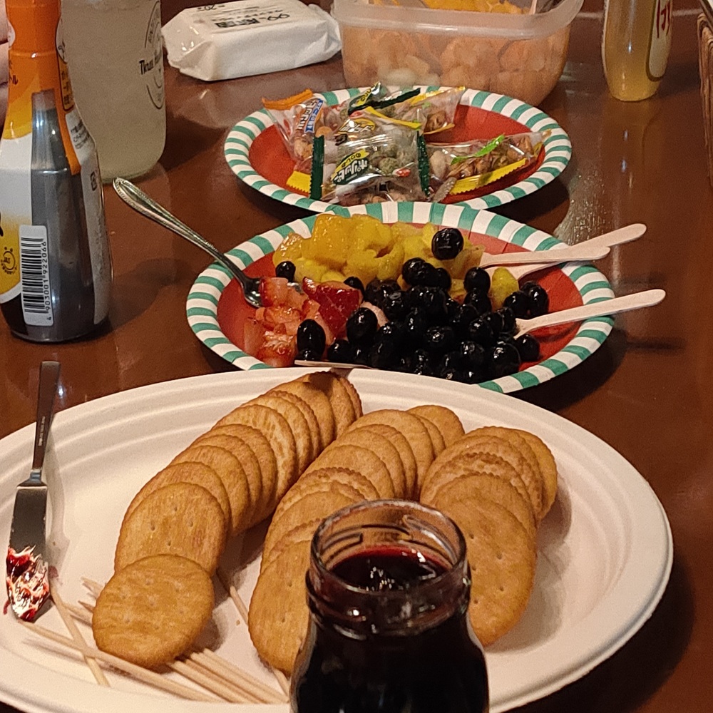 リッツにチーズやフルーツなどを自由にのせて、自分好みにアレンジしながらワイワイ♪シンプルだけど、これが意外と盛り上がるんですよね🍓🧀