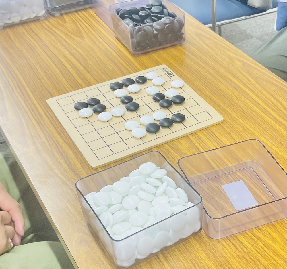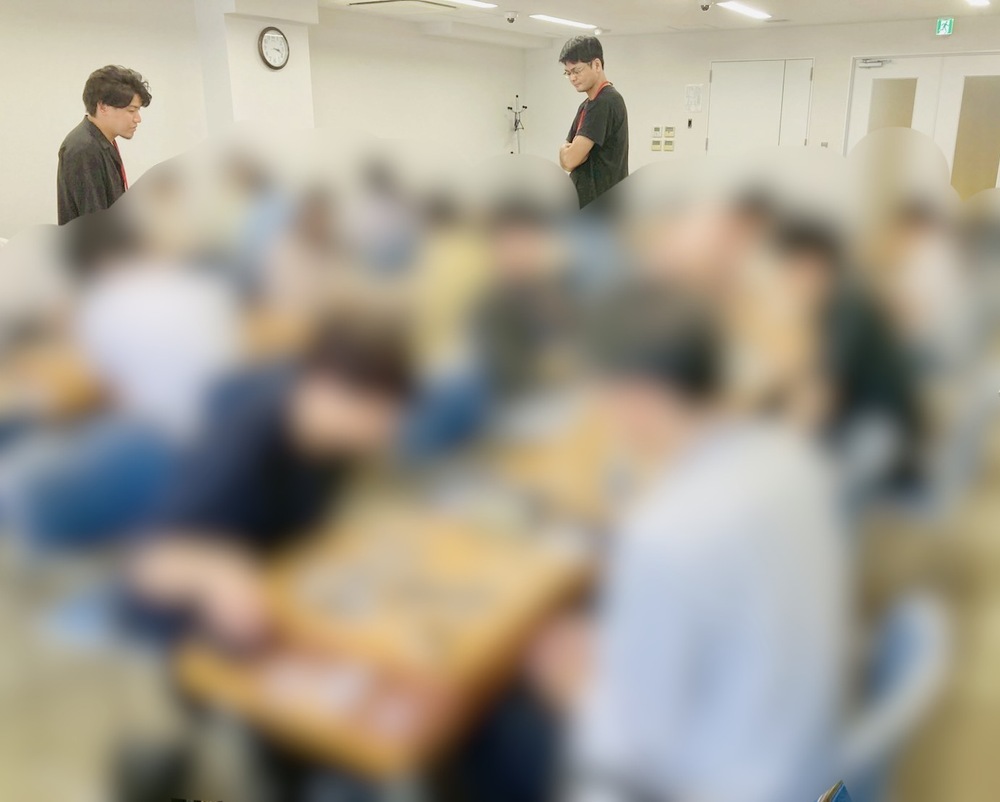 丁寧に説明するスタッフ。ランチミーティングのときに「私の囲碁会では、メンバー全員が二桁級からほぼ初段になりましたから」と鼻高々に話していました。信頼と実績あり。彼の手にかかれば、初段への道はお手のもの。強くなりたい人は彼に声をかけてみると良いでしょう。きっと丁寧に教えてくれます。次回のご参加もお待ちしております!