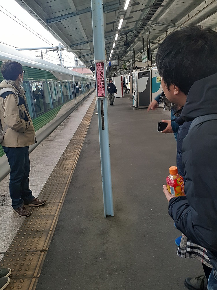 ホームで集合して指定の時刻の電車にのりました。人混みがあるため、スタートは横須賀駅のホーム内にしました