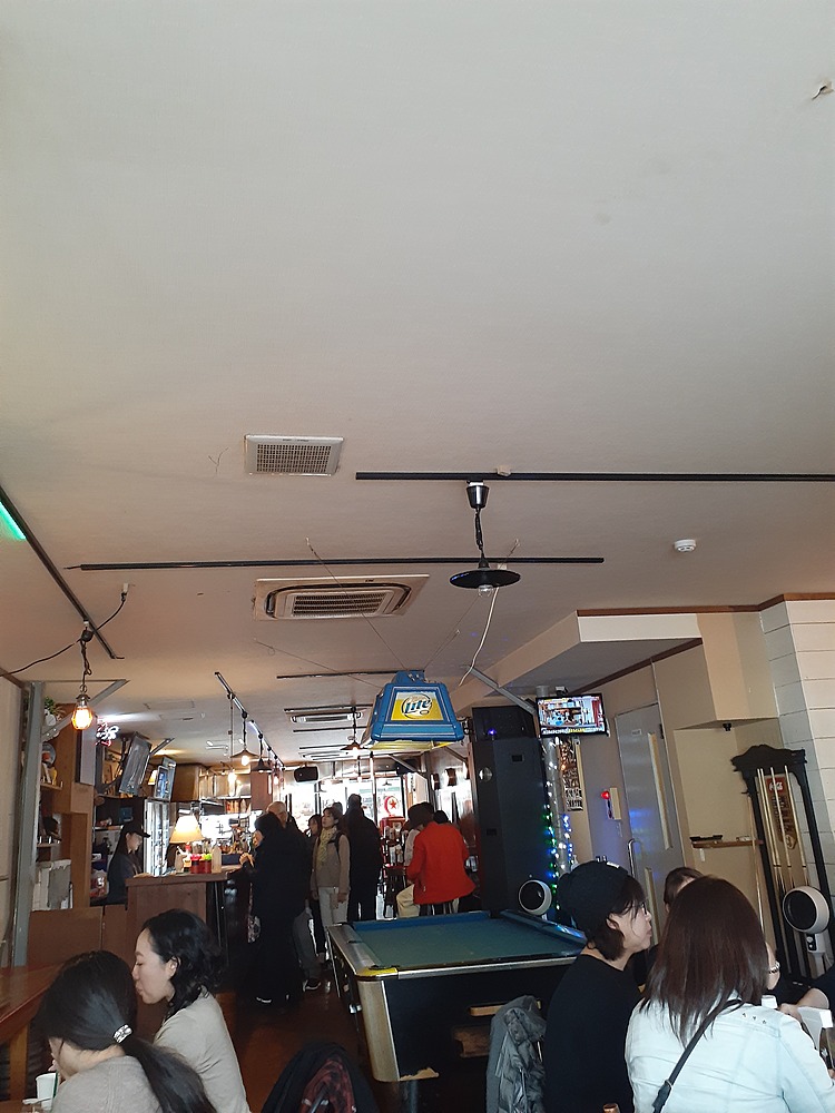 ④どぶ板通りで昼食。どぶ板は横須賀の特徴ある通りです。店内も何か外国のような雰囲気ですが(ビリヤード台が店内にありますし)そこで横須賀プレートを頼みました。少々お高めですが、横須賀らしさ盛りだくさんのプレートです