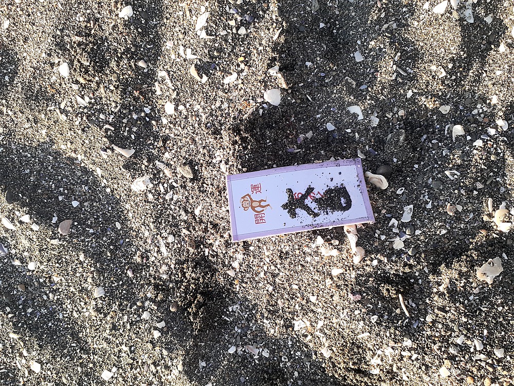 猿島の最後に、砂浜の砂鉄を使っておみくじをしました。