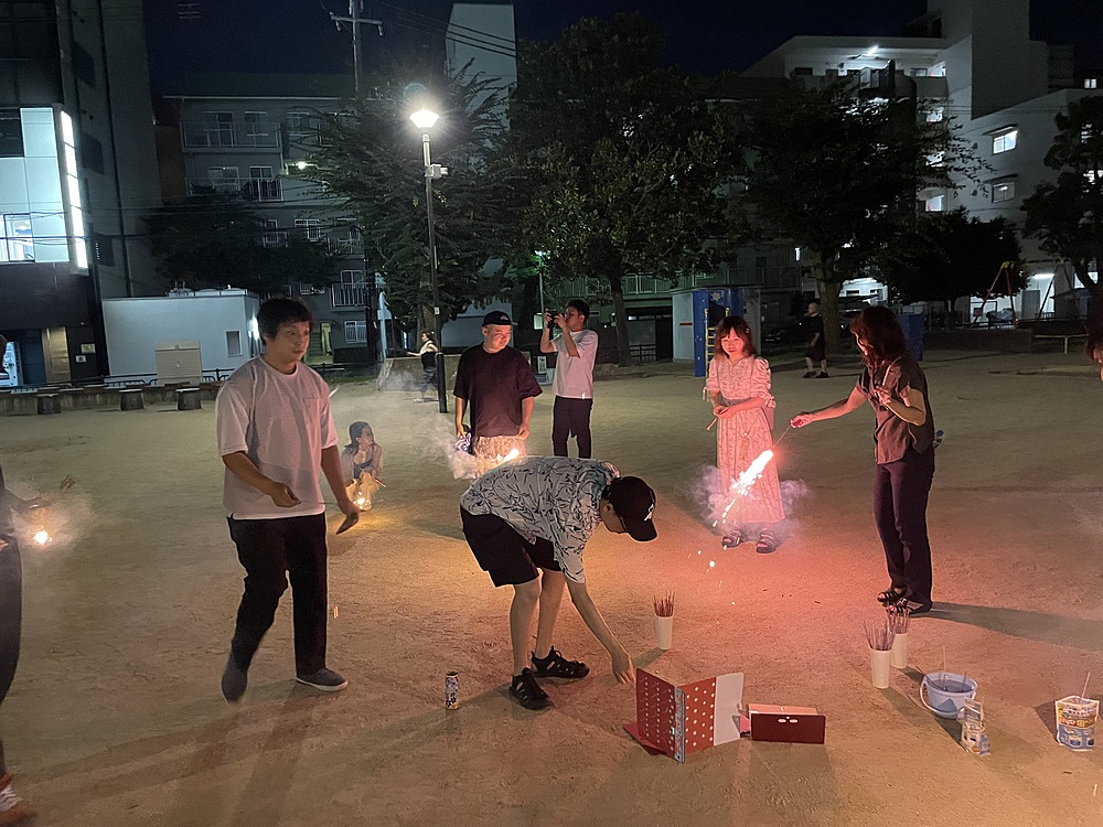 今回は初の試みで、手持ち花火イベントを開催したよ!カレーを食べて、お酒を飲みながらの手持ち花火は風流でした🎆カメラ撮影の上手な子がインスタ映えする写真を撮ってくれたので、それを載せときます♪