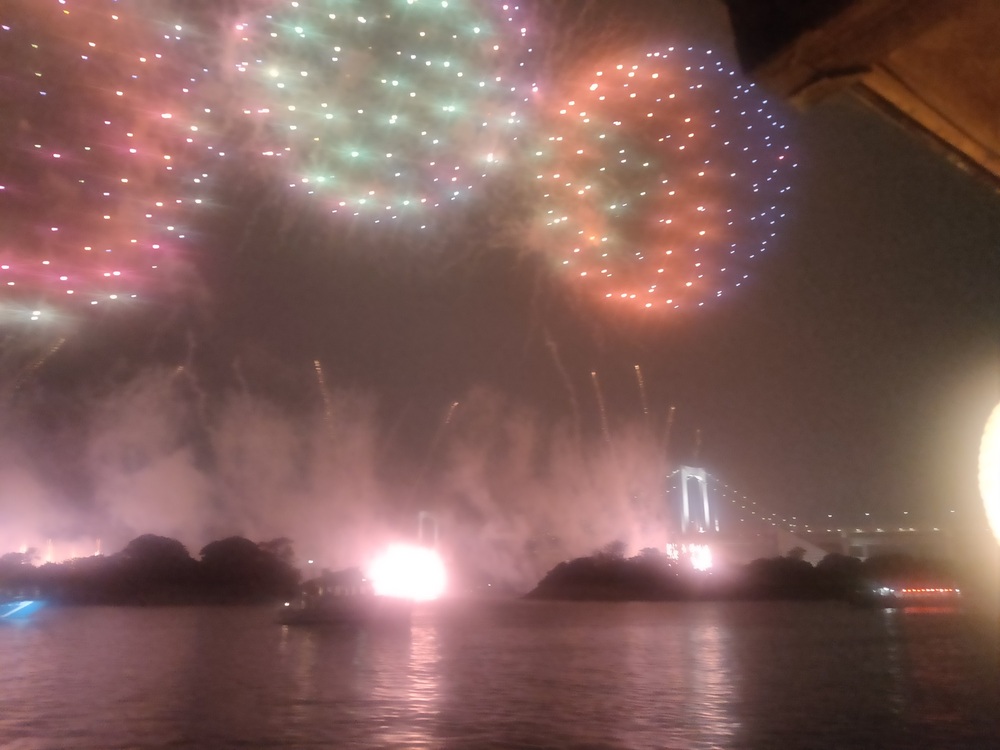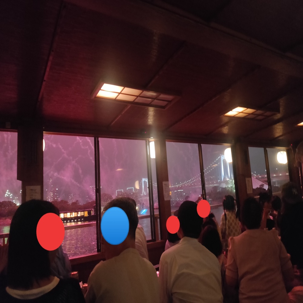 船内も途中から暗くなり、お台場花火大会が始まる!(うまく撮れてなくてすみません)