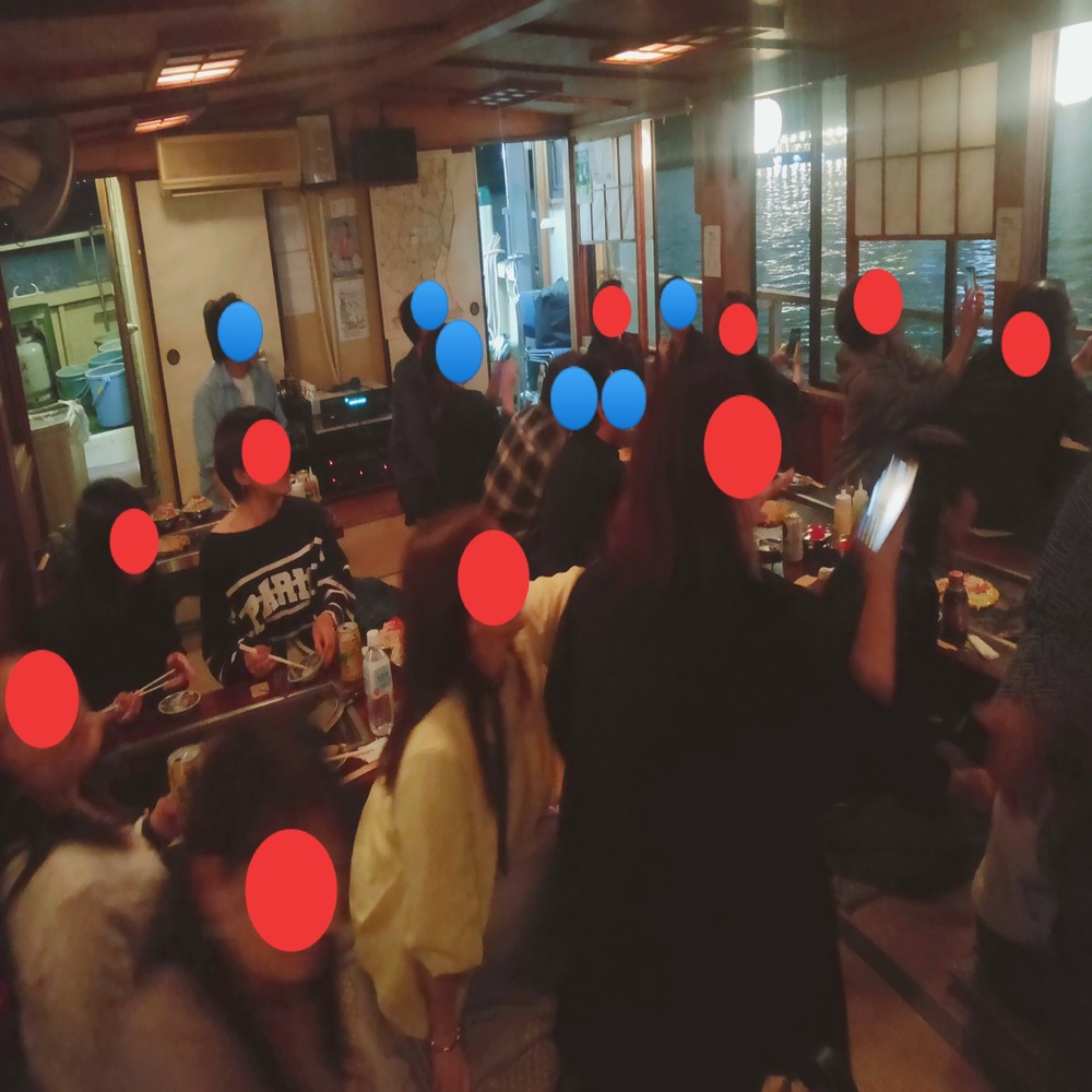 18時ごろ、最寄り駅で待ち合わせ。みなさん待ち合わせ時間より早く集合されていて、屋形船を楽しみにされていたのが伝わってきました☆彡雨の中、乗船場で屋形船に乗り込む。意外と揺れる💦意外と狭い💦
